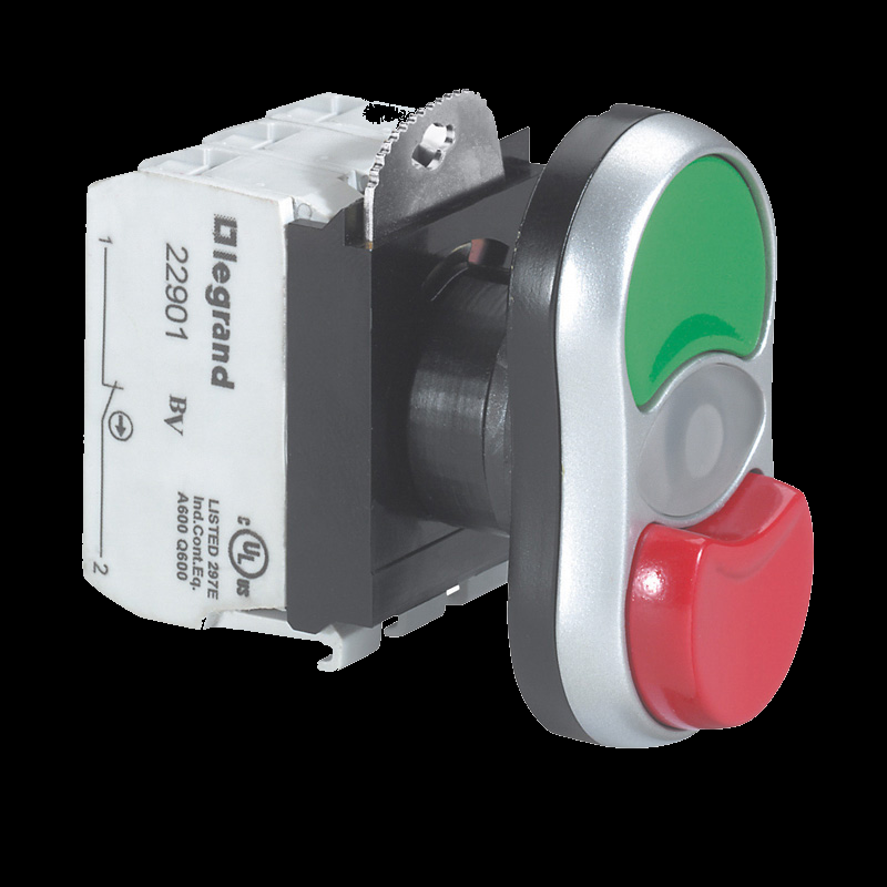 Przycisk sterowniczy podwójny 22mm czerwony/zielony 1Z 1R z samopowrotem z podświetleniem