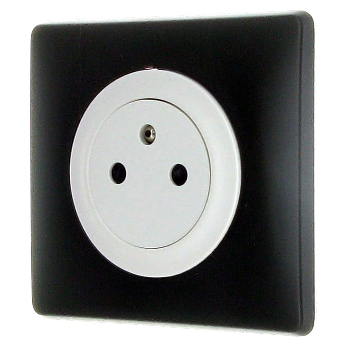 Gniazdo zasilające płaskie 2P+Z BIAŁE z ramką BAZALT kpl