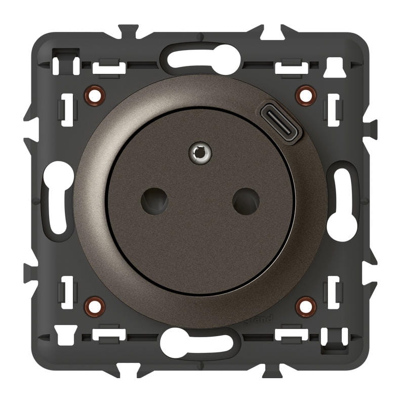 Celiane Gniazdo płaskie + ładowarka USB typu C GRAFIT