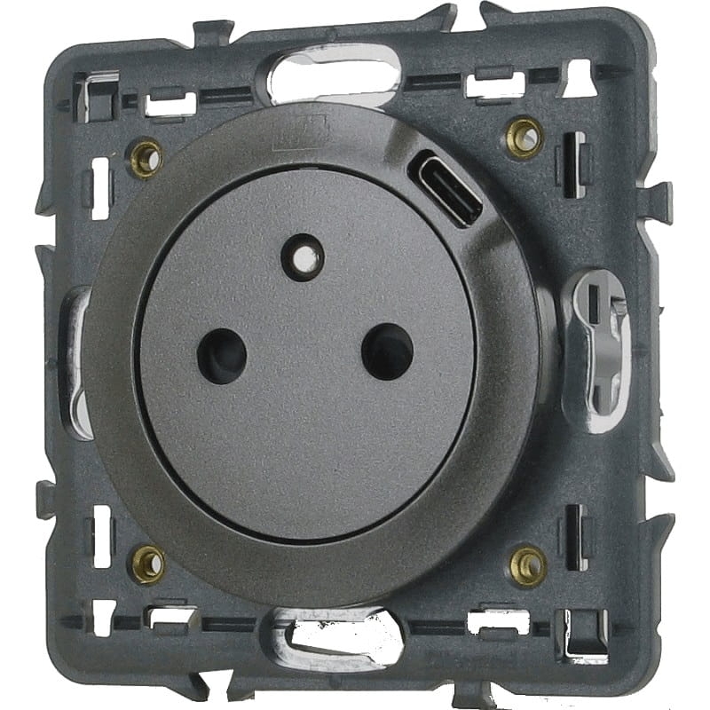 Gniazdo płaskie 2P+Z + ładowarka USB typu C GRAFIT