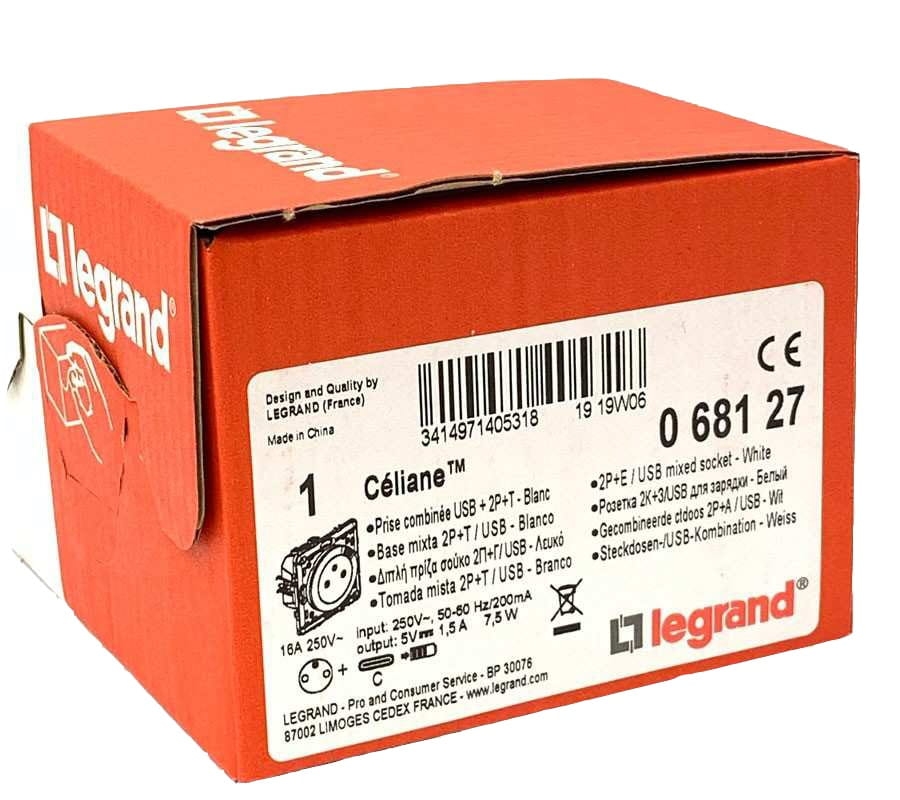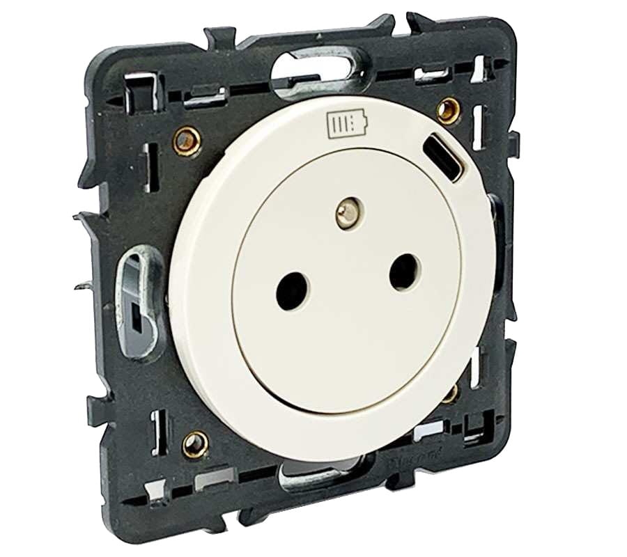Celiane Gniazdo płaskie + ładowarka USB typu C BIAŁE