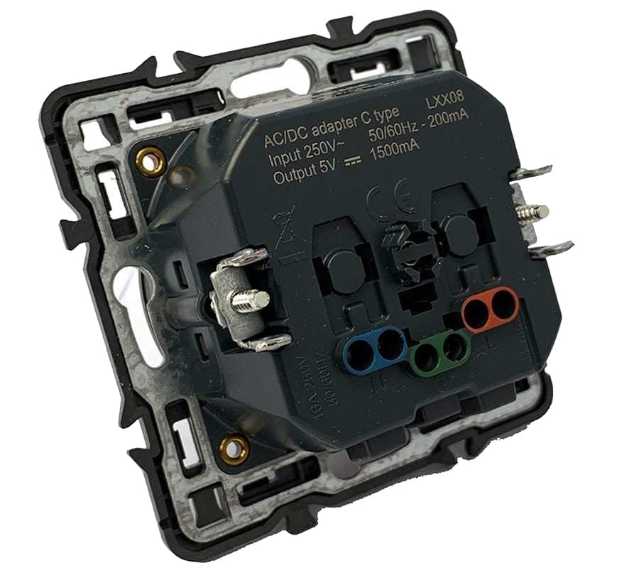- Wbudowana ładowarka USB Type-C 1,5 A - 5 V / 7,5 W przed gniazdem