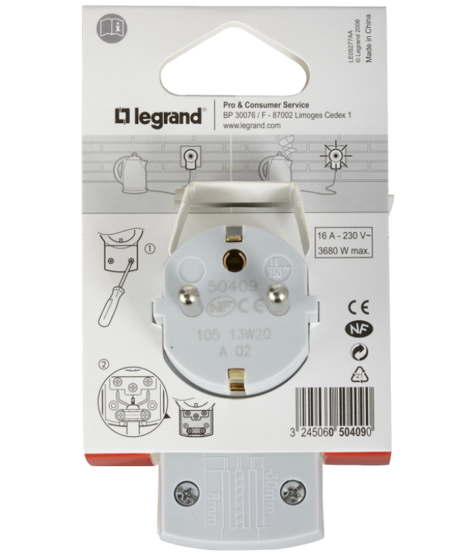 Wtyczka z wyłącznikiem 2P+Z 16 A przeznaczona jest do montażu w urządzeniach użytku domowego.