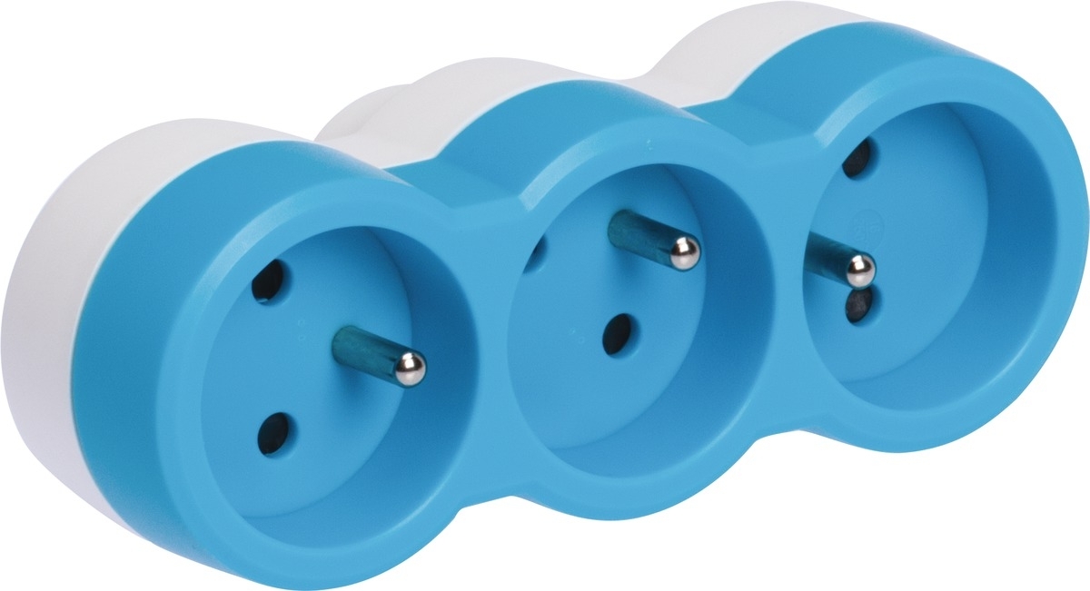 Rozgałęźnik wtyczkowy poziomy 3x2P+Z BIAŁO-NIEBIESKI