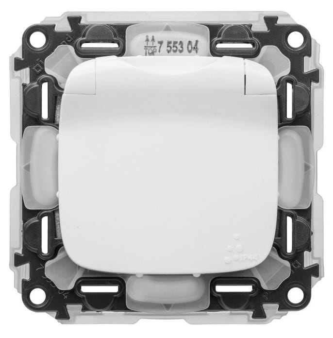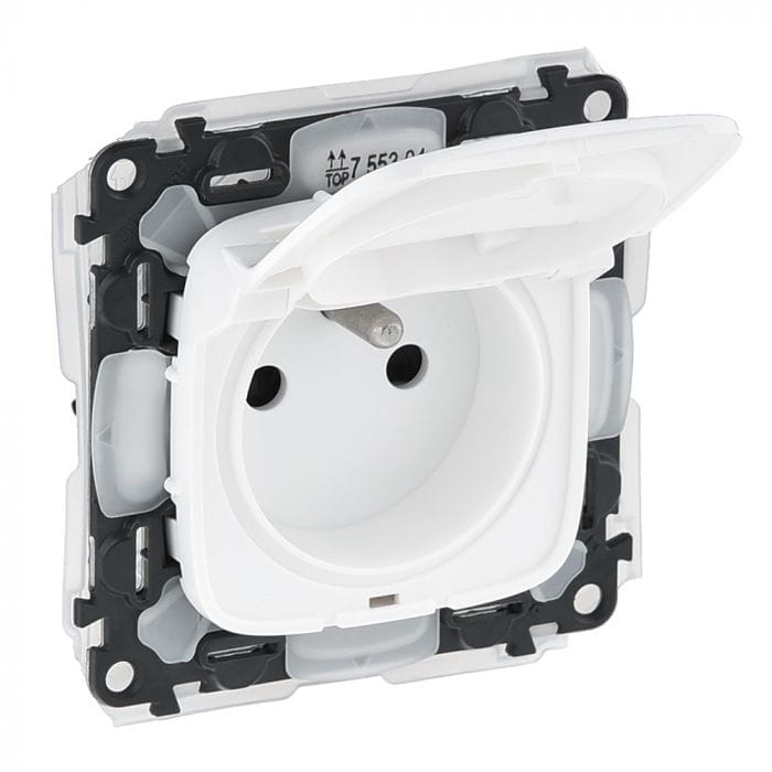 VALENA ALLURE Gniazdo 2P+Z z klapką białe szczelne IP44