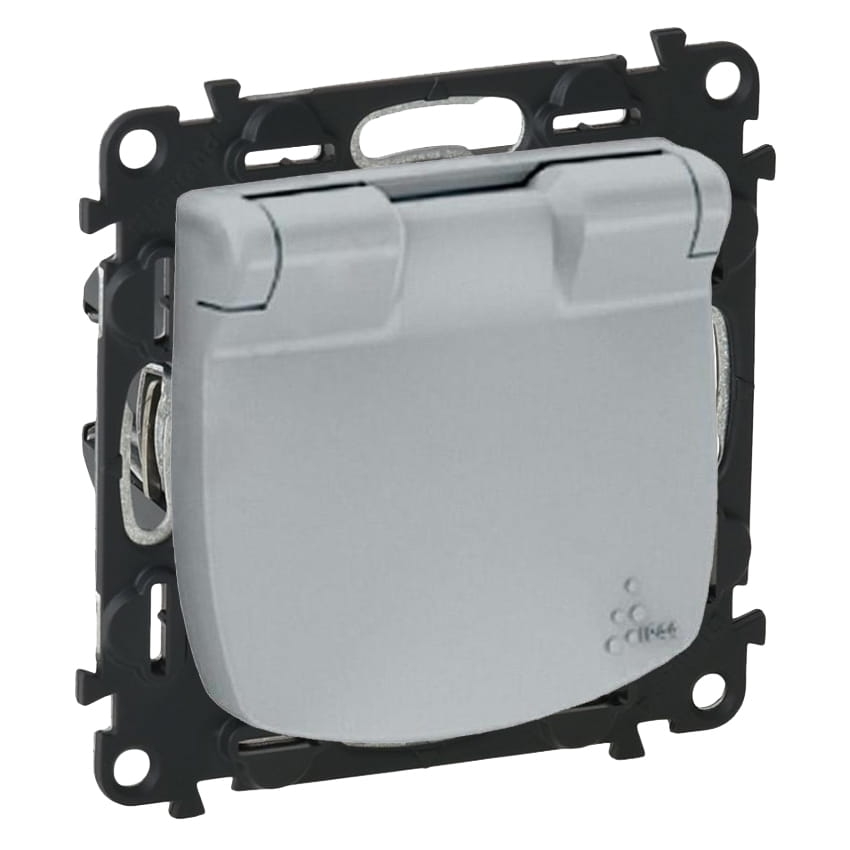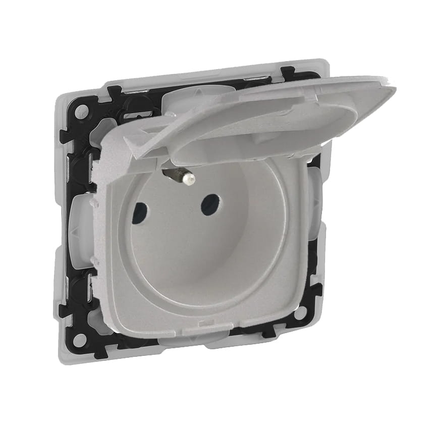 VALENA ALLURE Gniazdo 2P+Z z klapką aluminium szczelne IP44