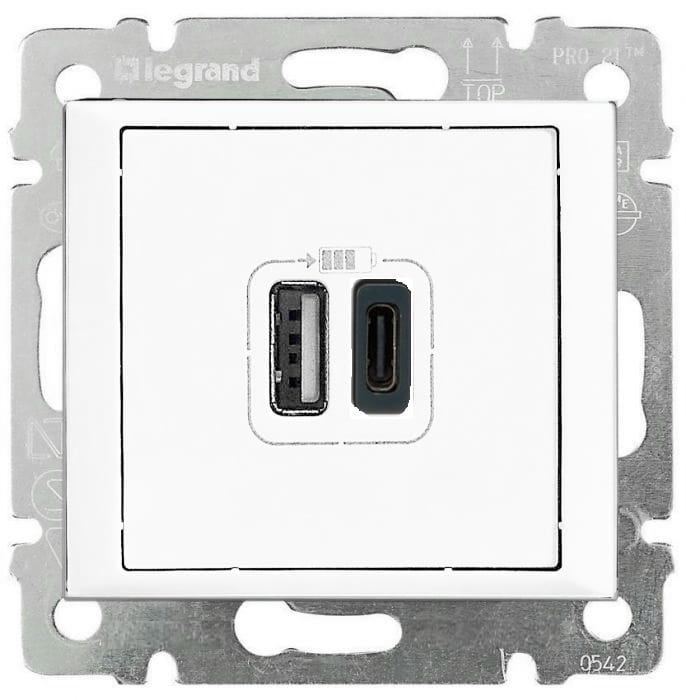 VALENA GNIAZDO 2 x USB Typ-A + Typ-C białe