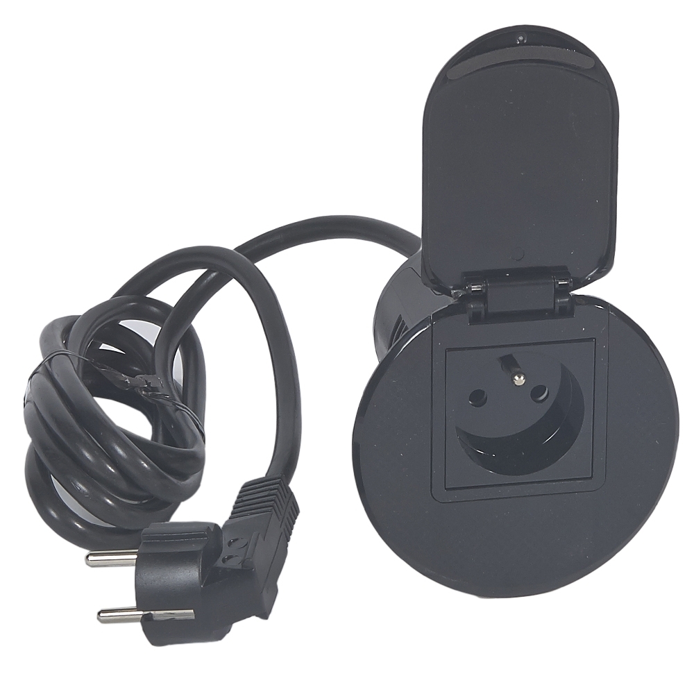 Przepust biurkowy z gniazdem 2P+Z i USB czarny