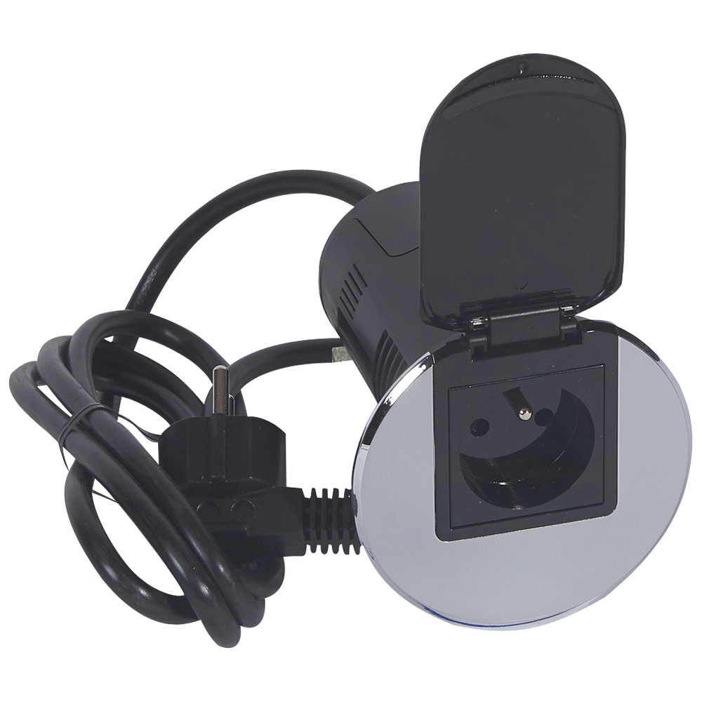 Przepust biurkowy z gniazdem 2P+Z stalowy